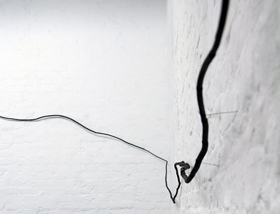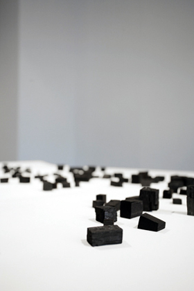 auch die an sich minimalistische „Wandzeichnung“ aus aneinandergereihter Zeichenkohle zu